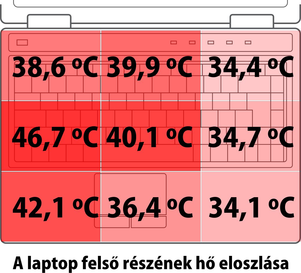 A hőtermeléssel már egészen más a helyzet. A gép nagyon erős négymagos processzort és tekintélyes teljesítményü