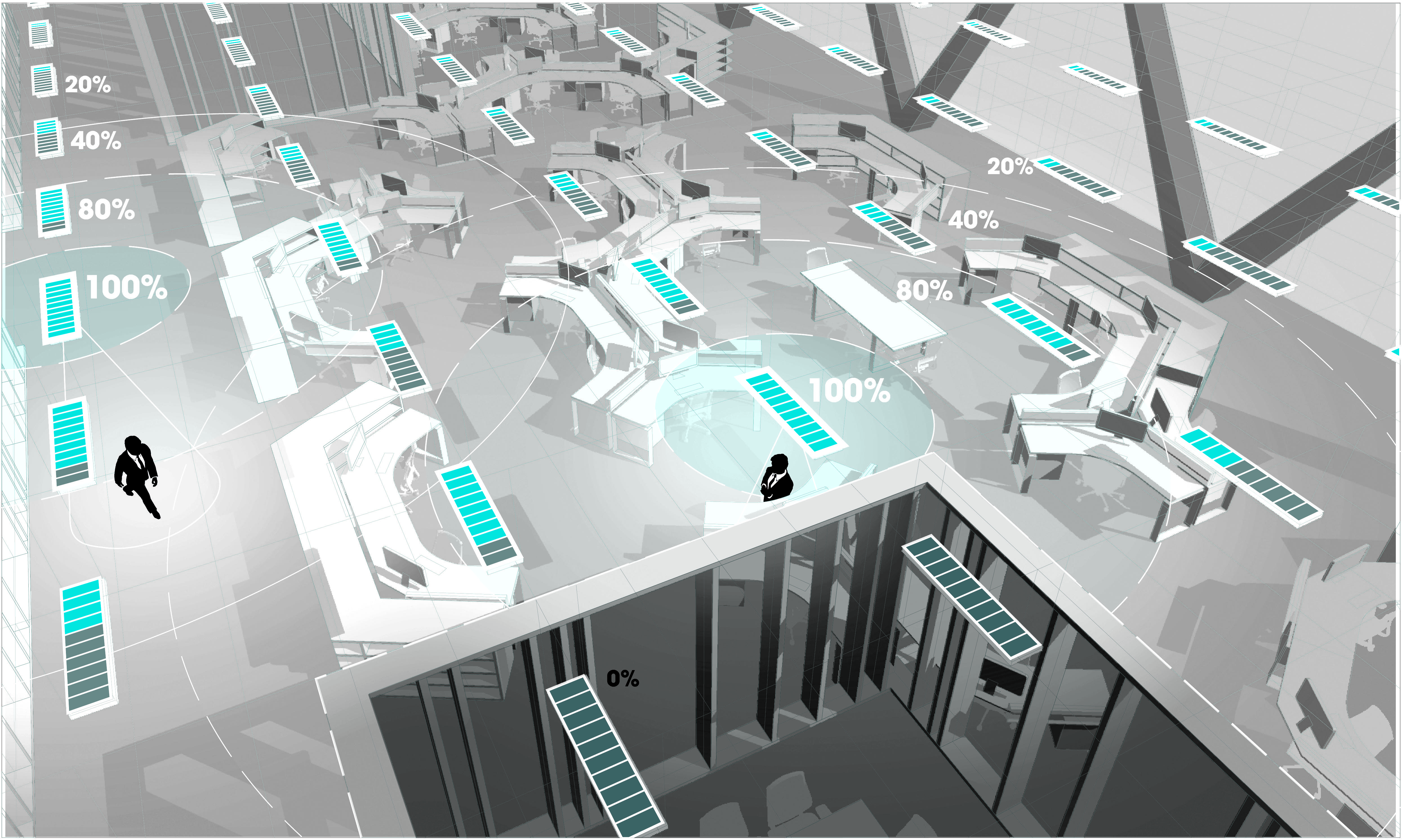 A lámpatestek ingyenesen letölthető (Apple App Store, Google Play) mobil applikáció segítségével távirányítással programozhatók és vezérelhetők, továbbá a termékcsomag tartalmazza a vállalat webes vezérlőfelületéhez való hozzáférést is. A szolgáltatás rendkívül hasznos eszközt ad az ingatlanüzemeltetők kezébe, ugyanis a rendszer szenzorai által érzékelt adatok elemzése segítségével pontosan azonosítható az épület különböző területeinek kihasználtsága. Ez lehetővé teszi a takarításra, fűtésre, vagy a biztonságra fordított költségek racionalizálását, ellenőrizhetjük az egyes világítótestek energiafelhasználását, és a rendszer azt is megmutatja, hogy hol és mikor van szükség karbantartásra.