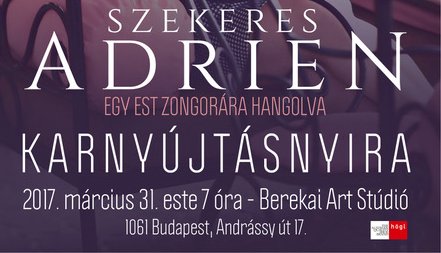 Budapest szívében, az Andrássy úton, egy gyönyörű lakásban várja mindazokat, akik szeretnének eltölteni vele egy kellemes estét. A koncerten csupán egy maréknyi ember vehet részt, akiktől karnyújtásnyira énekel majd Szekeres Adrien.