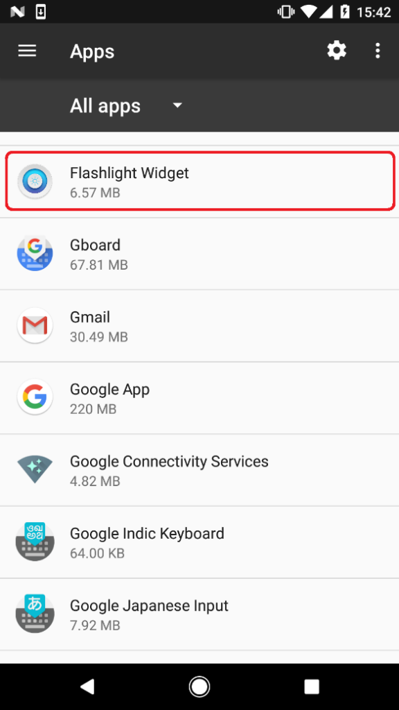 Keressünk itt: Beállítások > Alkalmazáskezelő > Flashlight Widget!